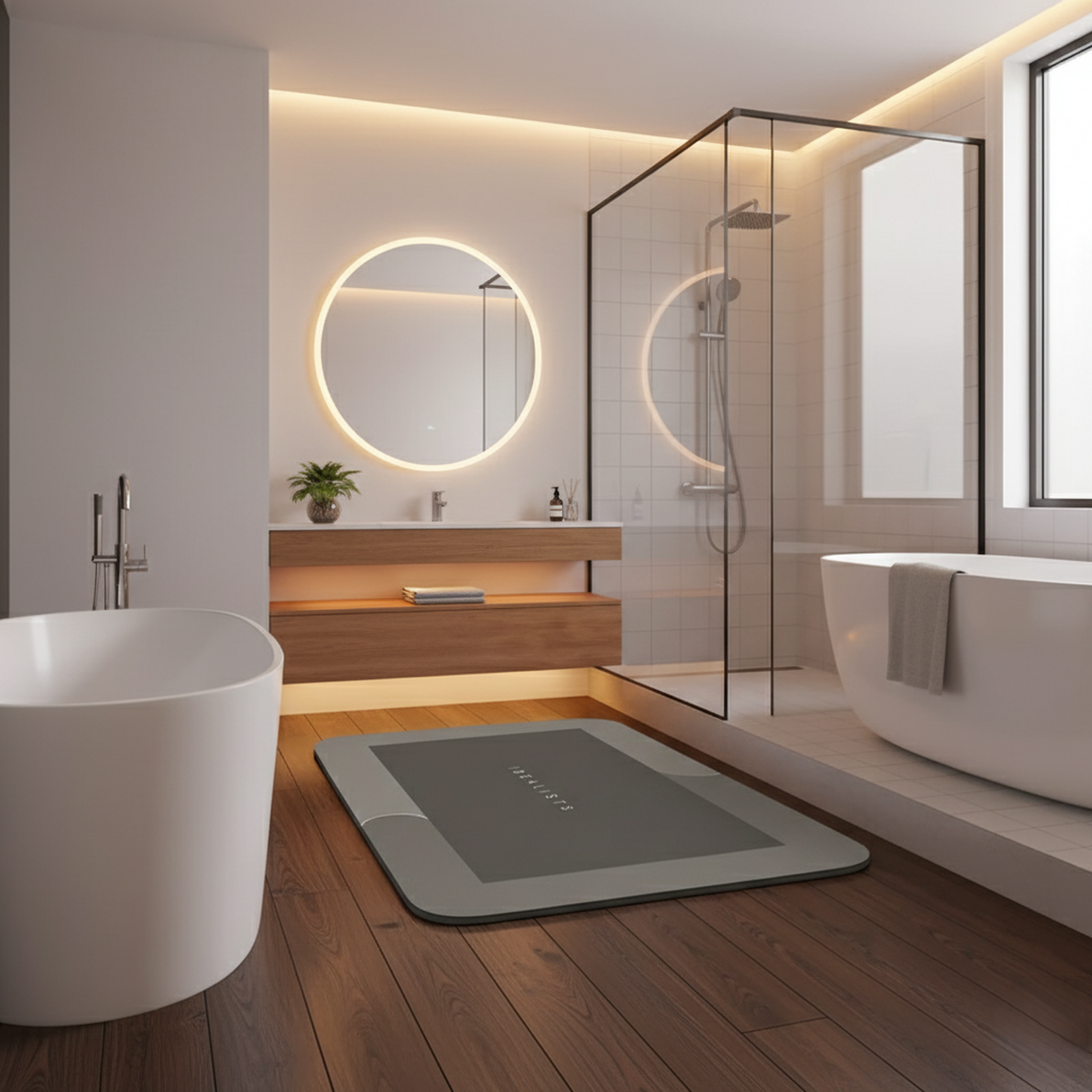 Safestep nimmt schnell Wasser auf 💧 und gibt es sofort wieder ab 🔄, sodass dein Badezimmerboden immer trocken bleibt. Die rutschfeste Oberfläche sorgt für Sicherheit bei jedem Schritt 👣. Mit modernem Design 🏡, geruchsneutral 🌿, einfach zu reinigen 🧼 und langlebigkeit 🔒 – Safestep ist die einzige Badematte, die du je brauchen wirst.